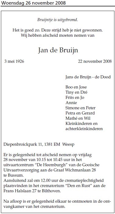 Jan de Bruijn overlijden