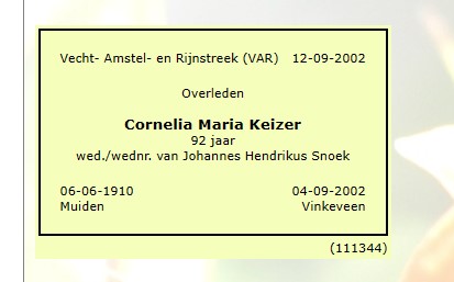 Cornelia Maria Keizer overlijden