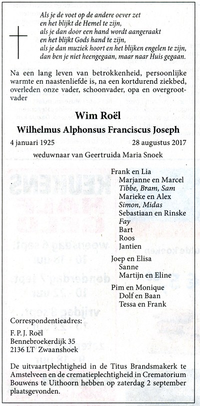 Wilhelmus Alphons Franciscus Joseph Roel begraven