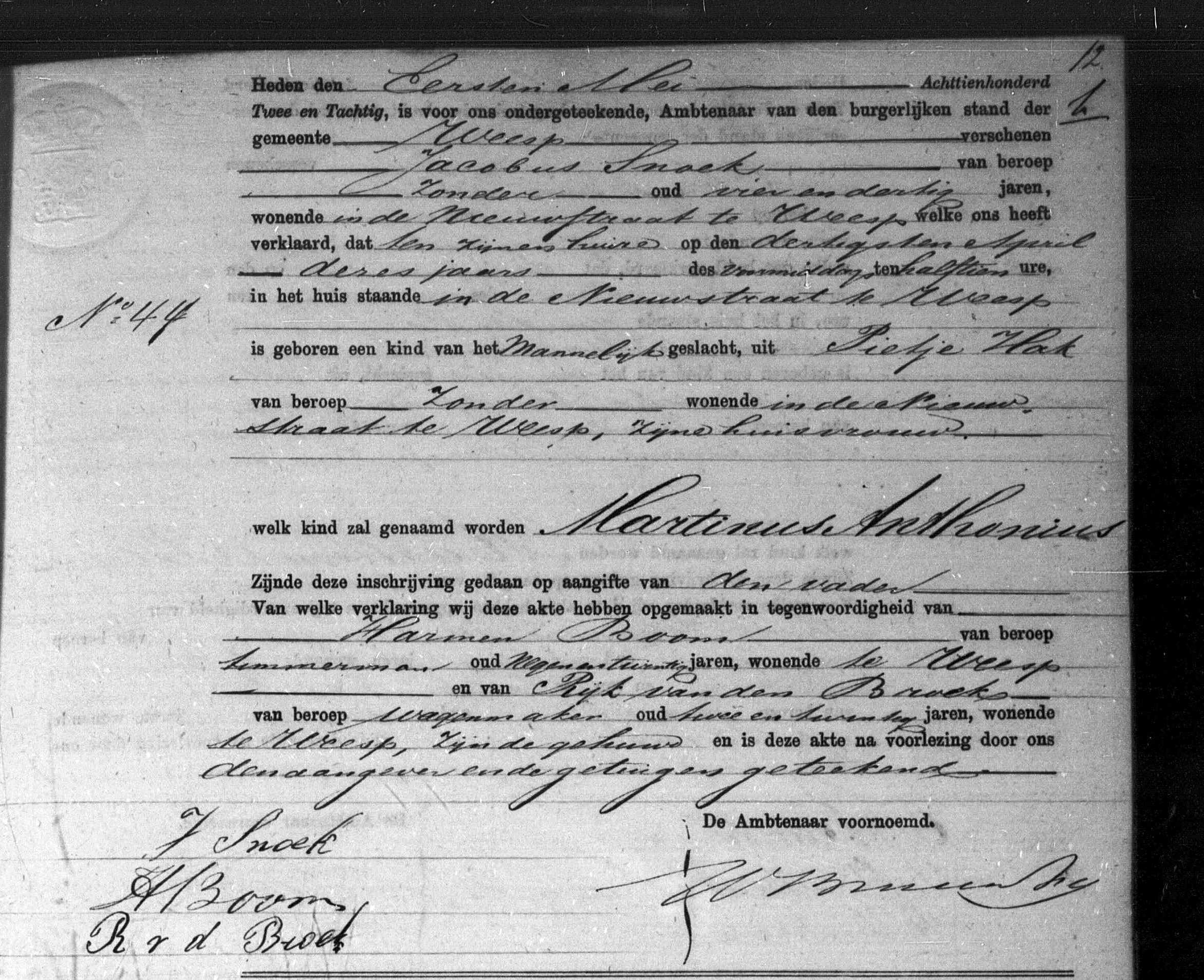 Martinus Antonius Snoek geboorte