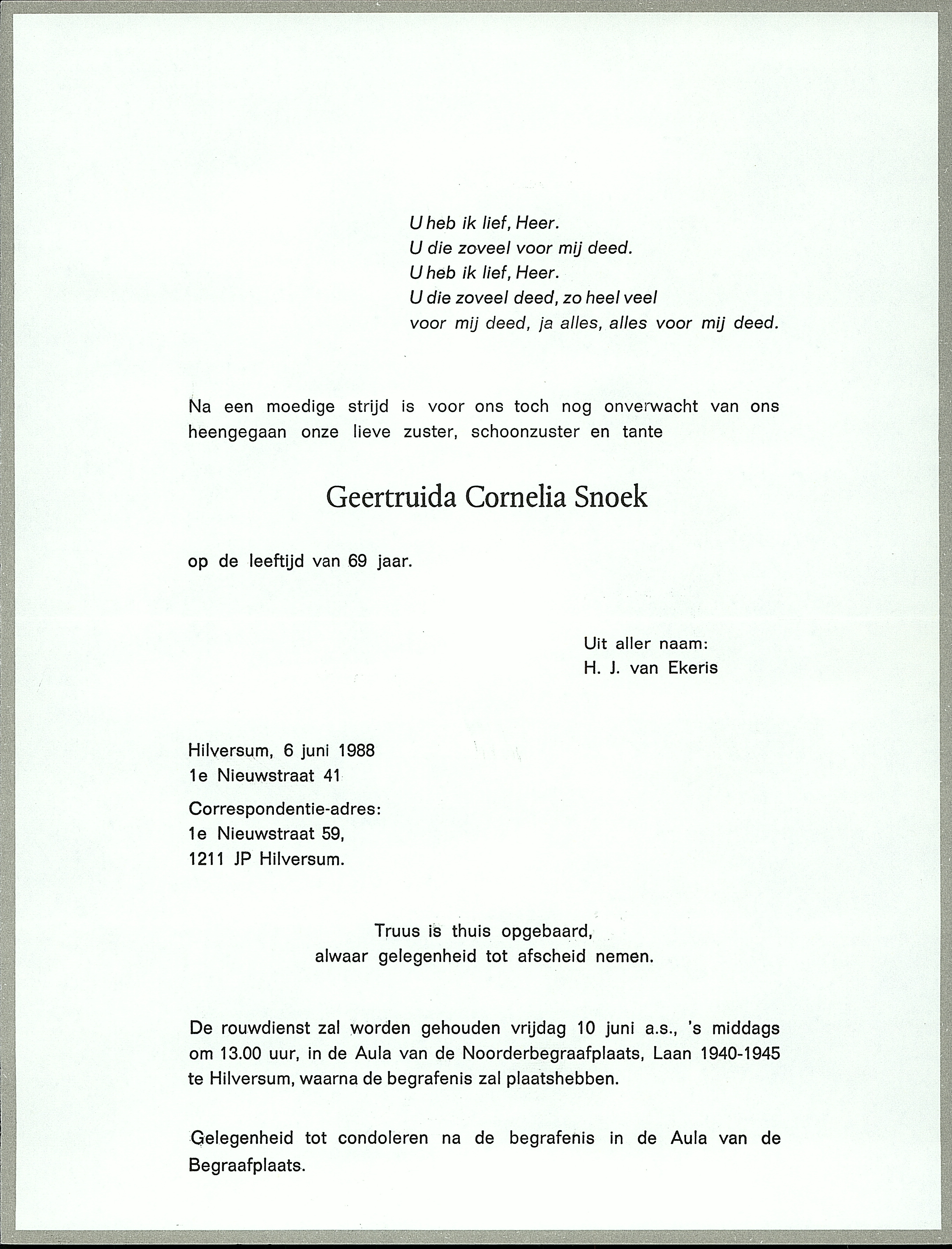 Geertruida Cornelia Snoek overlijden