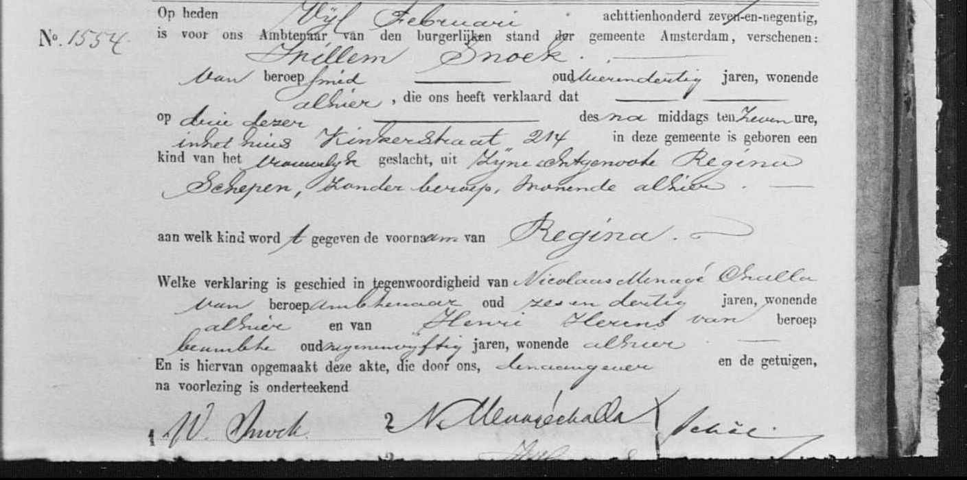 Regina Snoek geboorte