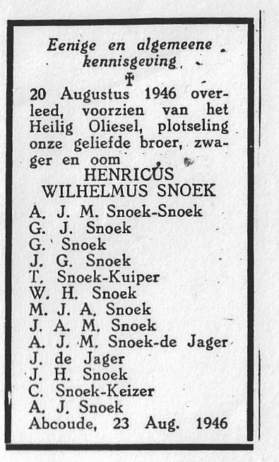 Hendricus Johannes Snoek begraven