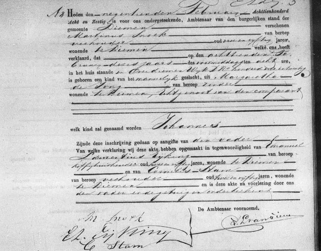 Johannes Snoek geboorte