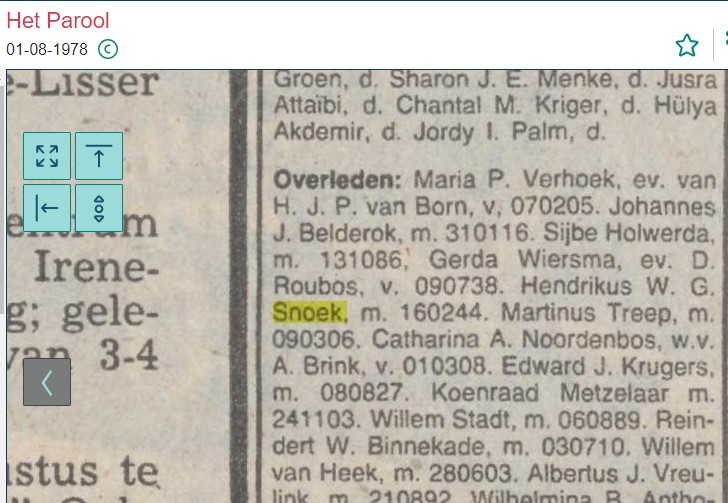 Hendrikus Wilhelmus Gerardus Snoek overlijden