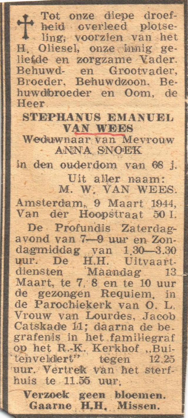 Stephanus Emanuel van Wees begraven