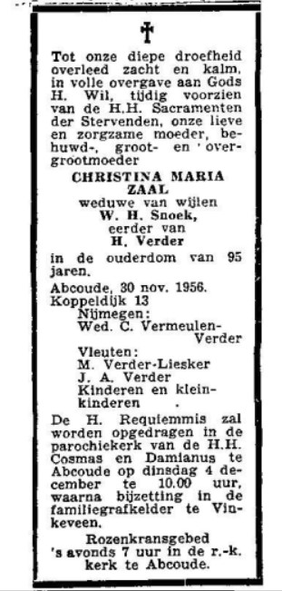 Christina Maria Zaal overlijden